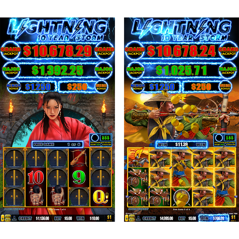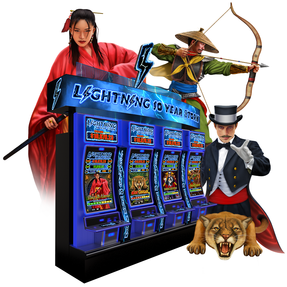 Get ready to adventure alongside these powerful characters. From Shang Jin Warrior to Golden Archers and Master Magician to Wild Cougar — excitement awaits in the Lightning 10 Year Storm slot machines.